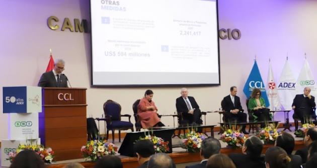El presidente de ADEX, Julio Pérez Alván, presentó las recomendaciones de su gremio en informalidad, salud y competitividad. Refirió que avanzar en la agenda pendiente de cada uno de ellos; y de las presentadas por las otras entidades gremiales, permitirá al Perú crecer más de 6% al año y de esa forma reducir la pobreza que afecta a un gran porcentaje de la población.