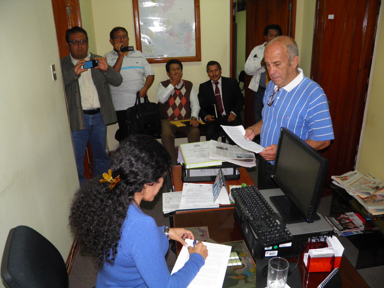 Chimbote en Línea.- Integrantes del Colectivo Ciudadano por la Reivindicación Moral de Áncash (Rema), llegaron hasta la oficina presidencial de la Corte Superior de Justicia del Santa para presentar un memorial en rechazo a la elección del extitular de esta sede, Samuel Sánchez Melgarejo, como representante de los jueces superiores para postular este sábado al Consejo Ejecutivo del Poder Judicial en Lima.