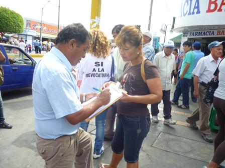 Chimbotenlínea.com (Por: Gonzalo Horna).- Sale como pan caliente. Y no es un producto o un plato de comida. Nos referimos a la recolección de firmas que buscan vacar en el cargo al presidente regional César Álvarez Aguilar y al alcalde provincial, Luis Arroyo Rojas. A cinco días de iniciada esta lucha al parecer las cosas van más que bien porque ya se cuenta con 13 mil firmas para remover del cargo a las mencionadas autoridades.Así lo revelo el ex consejero regional, Ezequiel Nolasco Campos quién integra el Directorio Pro Revocatoria.