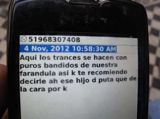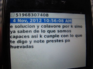 Chimboten en Línea(Unidad de Investigación).- El temible delincuente Juan Mario Acosta Julca alias “Piero” envió cuatro mensajes de texto al teléfono de un periodista de América Televisión, amenazando a un supuesto empresario chimbotano para que le entregue dinero a cambio de su vida.