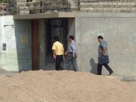 Chimbotenlinea.com (Por Cintia Cabrera).- ¿Una reunión de amigos? Uno de los detractores de la gestión del alcalde de Nuevo Chimbote, Alex Quiñones, fue sorprendido cuando salía del domicilio de “su amigo” Modesto Mondragón, éste último dirigente opositor a la comuna sureña. Al parecer, ambos personajes habrían sostenido una reunión de coordinación, pero al ser abordados por Chimbotenlinea.com no supieron responder de qué (¿?).  Fotos Cintia Cabrera
