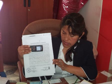 Yolanda Lara ha venido siendo víctima de una campaña de desacreditación por parte de su antecesor Edgar Cobián Giraldo y del abogado Manuel Cisneros Soto, quien dice ser dirigente nacionalista.(Texto y fotos Lindberg Cruzado)