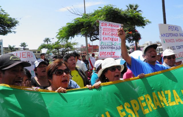 Chimbote en Línea.- Los moradores del pueblo joven Esperanza Baja se movilizaron por las principales calles de Chimbote exigiendo el reinicio de la obra de pistas que se encuentra paralizada desde hace más de un mes.