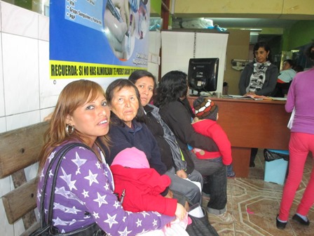 En este local funcionan 18 ambientes y atienden diariamente a 180 personas, entre niños y grandes, han instalado su sala de espera en la vía pública. Sentados en bancas esperan su turno en plena pista.