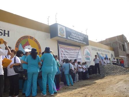 Chimbote en Línea (Locales).- Tal como lo habían anunciado los trabajadores de la Red de Salud Pacífico Norte realizaron su plantón en las afueras de la entidad, en rechazo a la designación del nuevo director, Breitner Enríquez Bazalar, debido a los cuestionamientos que pesan en su contra y por la falta de capacidad para asumir el cargo.