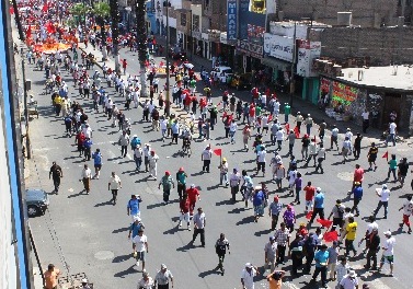 Sindicatos y organizaciones de la sociedad civil, así como algunas instituciones como el Proyecto Especial Chinecas encabezaron la movilización.