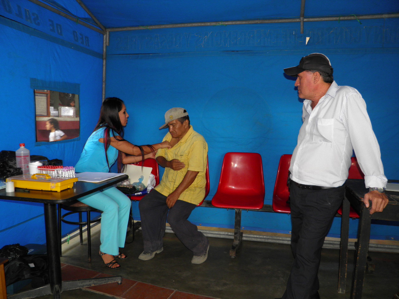 El coordinador de Enfermedades Metaxénicas de la citada Red, Marco Domínguez Aguilar señaló que el personal médico y asistencial ha previsto permanecer en este lugar desde las 7 a.m. hasta las 8 de la noche. “Hemos pedido a los propietarios de las empresas que si detectan que llegan personas con fiebre de inmediato derivarlos a la carpa instalada”, expresó.