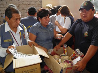 Chimbote en Línea (Locales).-Dos días después de que un adolescente se volara la mano izquierda al estallar una peligrosa “rata blanca” en el asentamiento humano El Satélite, la fiscal de prevención del delito, Magaly Monteza Ravello, y la jefa de la Unidad de Infracciones y Sanciones de la Municipalidad Provincial del Santa, Jazmín Baltazar Pérez, con apoyo de la Policía Municipal, decomisaron gran cantidad de artefactos pirotécnicos que se vendían en el Mercado Progreso.