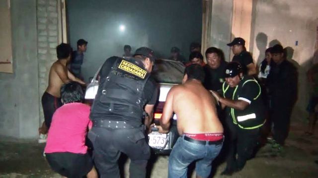 Agentes de Seguridad Ciudadana y vecinos realizaron denodados esfuerzos para apagar fuego y sacar vehículo de la casa.