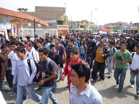 Nuevo Chimbote para luego tomar la Carretera Panamericana Norte en señal de protesta contra el gobierno central. “Ollanta escucha y únete a la lucha”, y “Estamos en las calles por culpa del gobierno”, eran algunas de las arengas que daban vida a esta protesta estudiantil.