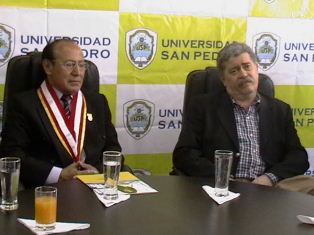 Walter Riso, fue recibido por el rector de la mencionada casa de estudios, José María Huamán, quien reconoció sus valiosos aportes en mejoras de la calidad de vida de las personas. (Por Milton Palpa)