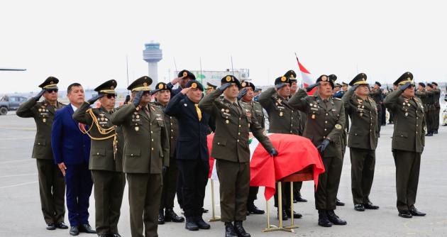 La ceremonia se llevó a cabo en la Aviación del Ejército de Perú, en el Callao, adonde arribaron los restos del alto oficial trasladados desde La Libertad. El féretro fue recibido por una compañía de honor que rindió tributo a quien dedicó su vida al servicio de la Patria.