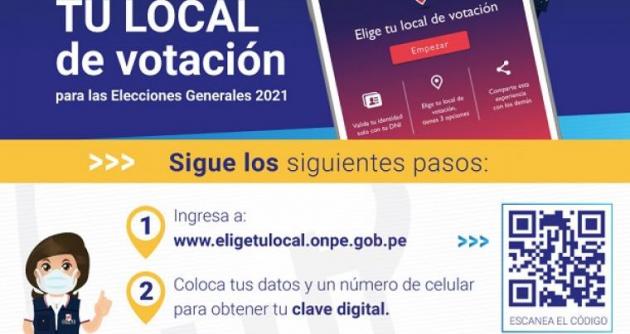 A través de aplicativo “Elige tu local de votación” desde cualquier equipo con internet, como un celular, computadora, laptop o tablet, el elector puede escoger hasta tres locales más cercanos a su domicilio, lo que evitará que el día de los comicios gaste tiempo y dinero en movilizarse.