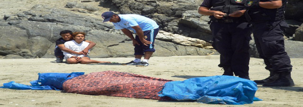 La incansable búsqueda del cuerpo del menor Christian Junior Alegre Evaristo (13) llegó a su fin al noveno día de su desaparición. Fue su padre, Nazario Alegre Rivas quien divisó el cadáver de su primogénito desde lo alto de una peña en la playa Anconcillo al promediar el medio día de hoy. (Texto y foto Cintia Cabrera)