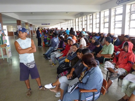 Chimbotenlinea.com (Centro Informaciones CECOPROS).- Hospital La Caleta. 5 a.m. Desde la entrada principal, decenas de personas en fila india forman una culebra gigantesca que se extiende larga y sinuosa pegada a la pared. Llega a la esquina, la dobla y sigue avanzando hasta alcanzar la puerta de emergencia del nosocomio. Son los enfermos. O sus parientes. Y han madrugado para obtener un ticket de atención. Todos van a pagar, pero aún teniendo dinero, no todos tendrán la posibilidad de ser atendidos. Así es, así vivimos y así sufrimos. Pero ¿por qué?