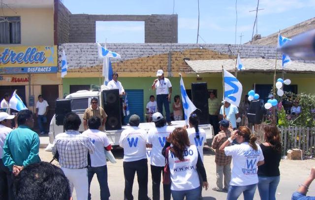 El controversial candidato se presentó esta mañana, en el pueblo joven Villa María, donde cerca de 60 simpatizantes acompañaron su discurso que estuvo lleno de expresiones contra los periodistas chimbotanos.
