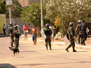 Unos 200 agentes de la DINOES y más de 300 policías que llegaron de Chimbote se enfrentaron a las 11 de la mañana y 1 de la tarde para restablecer totalmente el tránsito en la Panamericana Norte y permitir que cientos de vehículos interprovinciales y de carga pesada puedan continuar su trayecto, tras estar bloqueada esta vía desde ayer a las 11.30 de la noche.