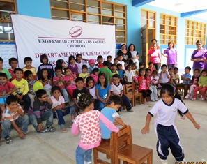 El programa de la chocolatada consistió en un ameno y colorido show infantil con un coro de villancicos a cargo de los estudiantes de las escuelas profesionales de las carreras profesionales de Contabilidad y Administración, respectivamente; asi como la donación de pelotas impresas con el logo de Responsabilidad Social que fue el aporte voluntario de los docentes del DARES.