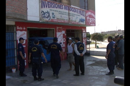Chimbotenlinea.com (Por Cintia Cabrera).- La Subgerencia de Comercialización de la Comuna Sureña clausuró la tienda de repuestos de motos “Inversiones Mendoza”, por dedicarse a la venta de motos sin tener la licencia correspondiente.(Foto Cintia Cabrera)