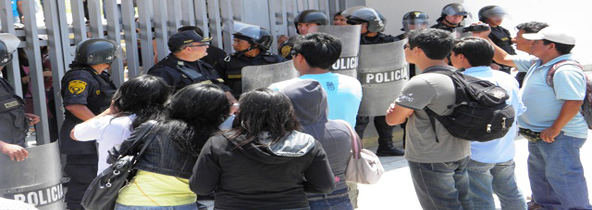 El jefe de la División Policial de Chimbote, coronel PNP Walter Olivos Romano, reveló que por acciones de inteligencia descubrieron al menos que una persona con antecedentes de terrorismo viene apoyando las protestas de los estudiantes de la Universidad San Pedro contra el rector José María Huamán Ruiz.(Texto y foto Lindberg Cruzado)