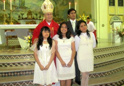 En el oficio religioso concelebrado con los sacerdotes Segundo Díaz Flores, vice canciller de Uladech Católica, Juan Roger Rodríguez, docente de la universidad y Roberto Olórtegui, el obispo consagró en los sacramentos a los estudiantes Jean Paul Montero Rodríguez, de la carrera profesional de Derecho; Darly Silva Arias, de la carrera de psicología, así como a Luissa Villegas Guevara y Alejandro Urteaga Arias, ambos escolares del colegio Uladech.