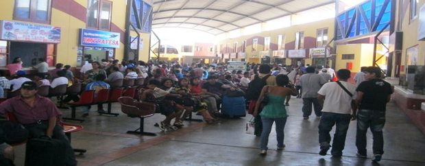 Chimbotenlinea.com (Por Leidy Cobeñas) .-Cerca de dos mil pasajeros con destino al sur del país permanecen varados en el terminal terrestre de Chimbote, “El Chimbador”, debido al bloqueo de la carretera por parte de los mineros informales de Huanchuy, en el kilómetro 371 de la Panamericana sur, a la altura de la Provincia de Casma.