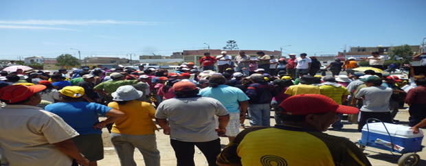 Chimbotenlinea.com (Por: Cintia Cabrera).- La guerra de cupos emprendida por agremiados a Construcción Civil y una facción de obreros que lidera Ezequiel Nolasco Campos, postergó por segundo día el inicio de las tareas de saneamiento en los terrenos del pueblo joven 1° de Mayo, donde se deben construir pistas y veredas.