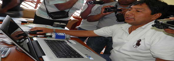 Juan Calderón Altamirano denunció hoy que “La Centralita” no solo sirvió para manejar la imagen del presidente regional César Álvarez Aguilar bajo estilos fujimontesinistas sino también para elaborar presuntamente perfiles para presentarlos a las licitaciones del Proyecto Especial Chinecas.(Texto y foto Lindberg Cruzado)