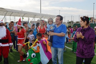 Chimbote en Línea (Nuevo Chimbote).- El burgomaestre de Nuevo Chimbote, Juan Francisco Gasco Barreto, y su esposa Karina Castillo llevaron esta tarde la alegría de la Navidad a tres mil 556 niños del distrito con la entrega de regalos, chocolatada y panetón en el parque del asentamiento humano La Molina.