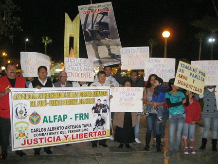 Chimbotenlinea.com (Por: Lindberg Cruzado).-Los familiares, compañeros de trabajo del sector pesquero y licenciados del Ejército Peruano participaron de una vigilia a favor del ex soldado peruano Carlos Alberto Arteaga Tapia de 37 años, preso en Estados Unidos acusado de pertenecer a la red terrorista Al Qaeda y narcotráfico.