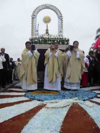 Chimbotenlinea.com (Fuente: Diócesis de Chimbote).- Este domingo 10 de junio a las 10 a.m. la Plaza de Armas de Chimbote lucirá adornada de alfombras de flores, pues se celebrará la fiesta de la Solemnidad del Cuerpo y la Sangre de Cristo (Corpus Christi), una de las fiestas religiosas más importantes y que se viene celebrando en las diversas jurisdicciones eclesiásticas del país.
