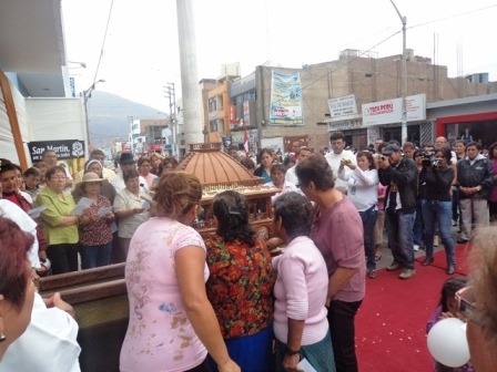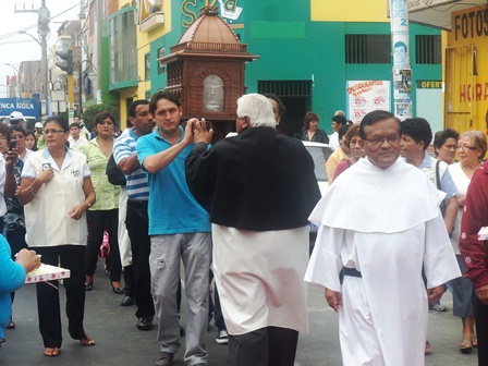 El sarcófago que contiene el omóplato de fray Martín de Porres recorrió en procesión la avenida Alfonso Ugarte, acompañado de fieles, bandas de música de diversos colegios locales y la comunidad de los frailes Dominicos afincados en Chimbote . A su paso, recibió el homenaje de los alumnos de la institución educativa “Víctor A. Belaúnde”  y de la escuela de niños "San Vicente de Paúl".