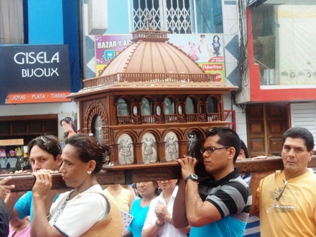 Chimbotenlinea.com (Fuente: www.obispadodechimbote.org) Las reliquias de San Martín de Porres, presentes ya en la comunidad de la Diócesis de Chimbote, llegarán este miércoles, jueves y viernes, a las parroquias Virgen de la Puerta, San Martín de Porres y San José Obrero, respectivamente; y en cada una de ellas, se ofrecerán homenajes de los fieles, grupos parroquiales, niños y jóvenes. De esta manera, Chimbote se une al peregrinaje de los restos del santo moreno, al celebrarse los 50 años de su canonización.La noche del viernes, la urna que contiene el omóplato de fray Martín, será trasladada de la parroquia San José Obrero en Laderas del Norte a la parroquia Nuestra Señora del Perpetuo Socorro (pueblo joven La Victoria). Se tiene previsto pasar en procesión por el barrio El Progreso, la urbanización 21 de Abril en dirección a la parroquia, para la veneración de los fieles.