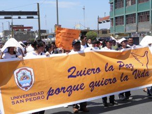 Las diferentes parroquias y congregaciones religiosas de la Diócesis de Chimbote asistieron en forma masiva a la Marcha por la Vida, la Paz y la Justicia, que unió a nuestra ciudad en un solo clamor: “BASTA DE VIOLENCIA, SÍ A LA PAZ., SÍ A LA VIDA.