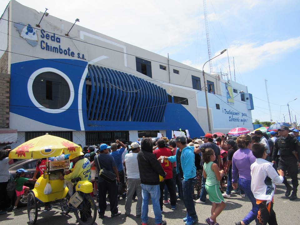 Chimbote en Línea.- invasores de las 217 hectáreas de Chinecas se apostaron en el frontis de la empresa Sedachimbote para exigir a sus funcionarios la instalación de piletas en cada pueblo, a fin de poder abastecerse de agua potable.