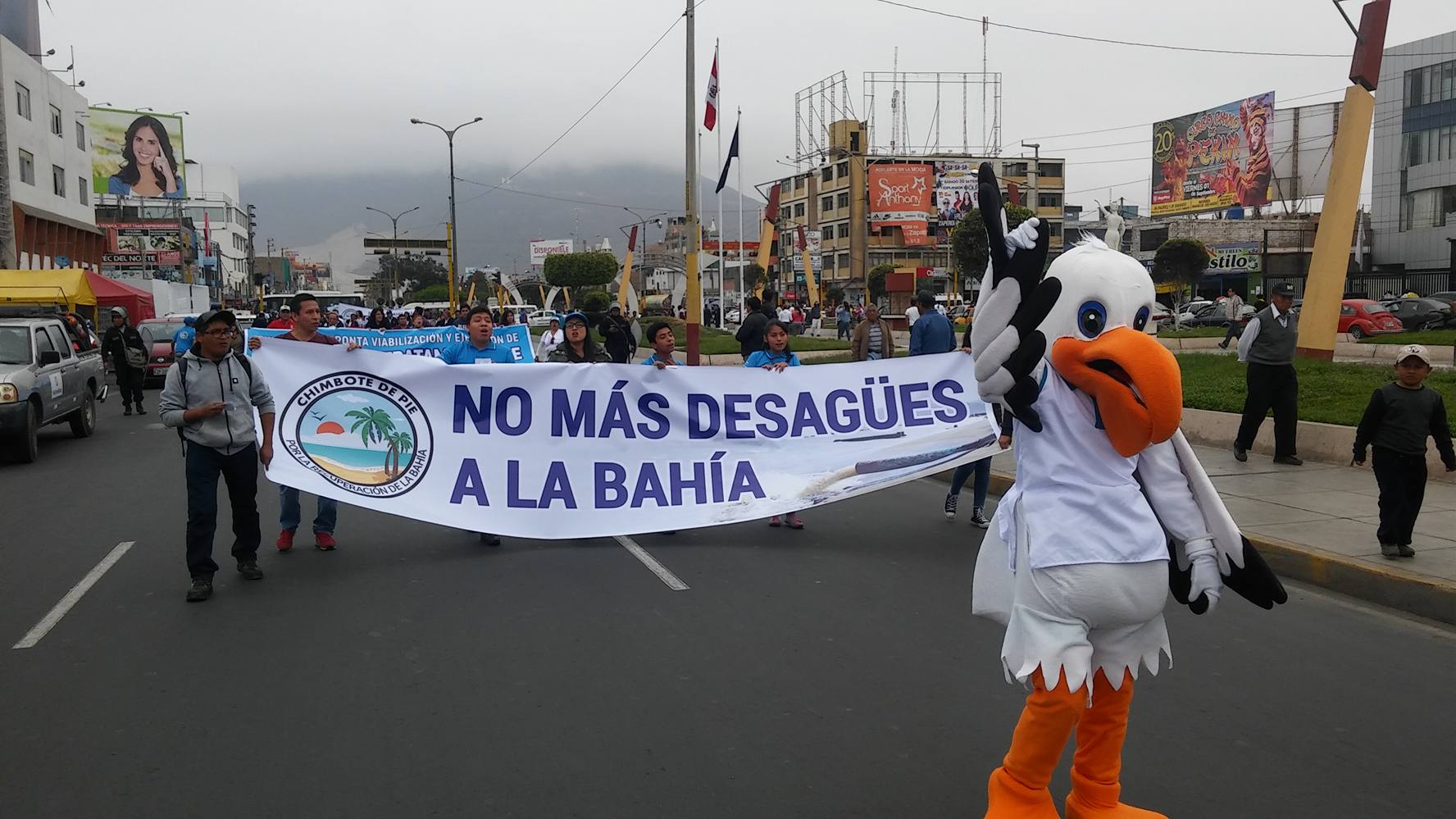 Portando pancartas y gigantografías con el lema “No más desagües a la bahía”, el colectivo ciudadano- Chimbote de Pie por la Recuperación de la Bahía El Ferrol- exigió a las autoridades que se cumpla con la viabilización y ejecución de la planta de tratamiento de aguas residuales anunciado por la empresa paramunicipal.