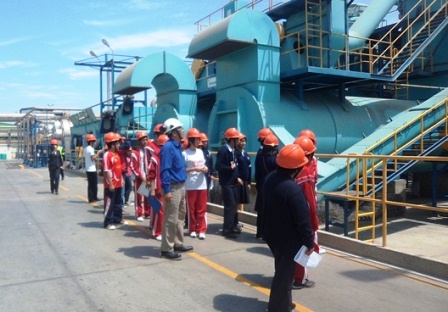 En la planta pesquerala delegación de 30 personas fue recibida por el administrador, Edwin Lazaro, y el ingeniero Walter Torres, quienes luego de una previa charla de seguridad los condujeron hasta los diferentes ambientes de esta pesquera, una de las más grandes y modernas del Perú.