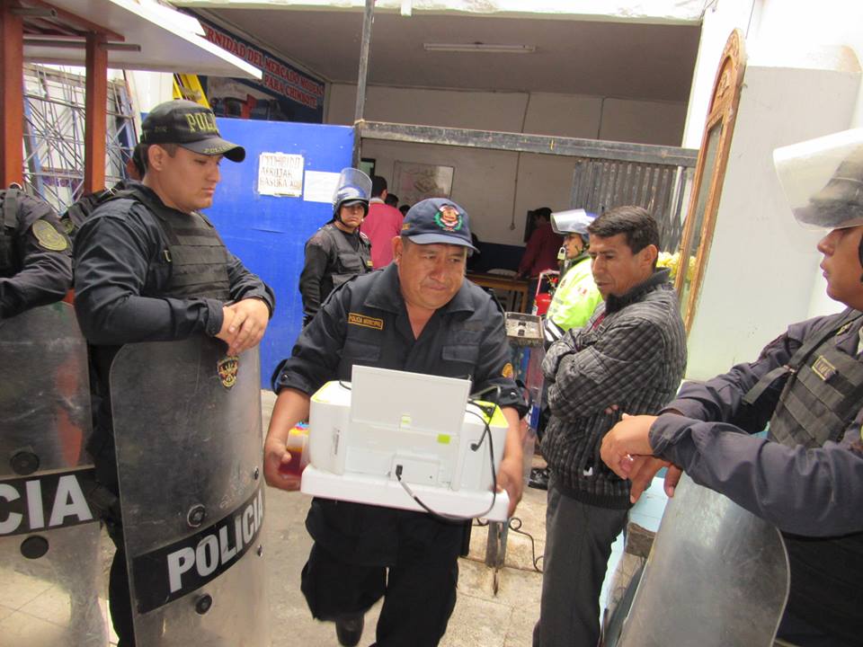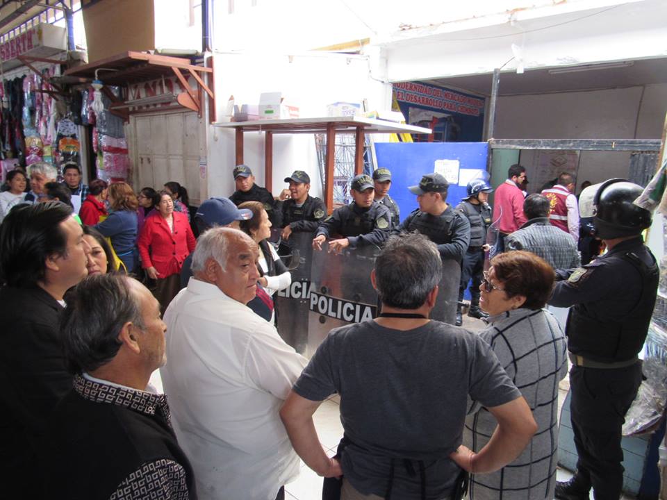 Provistos de un fuerte contingente de la Unidad de Servicios Especiales (USE) y agentes de Seguridad Ciudadana, se procedió al cierre del centro de abastos para dar inicio a la diligencia, el cual generó el fastidio de los demás comerciantes quienes increpaban a la directiva y autoridades por la falta de pago e impedimento del ingreso.