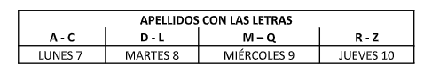 El cronograma por orden alfabético para setiembre es el siguiente:
