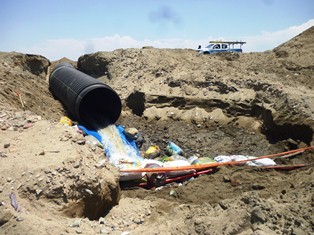 Pro-vías permitió al Proyecto Irrigador, hacer esta rotura en la CPN donde se colocó un sifón para que el agua drene con facilidad hasta el otro lado de la vía y desemboque directo al mar, una solución temporal que también resulta perjudicial para el medio ambiente, fauna y veraneantes.