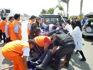 Chimbote en Línea (Nuevo Chimbote).- Pudo ser peor. Cifras alarmantes son el saldo del simulacro de sismo de 8 grados de intensidad en la escala de Richter con consecuencia en tsunami, en el distrito de Nuevo Chimbote. Al menos 430 personas se reportaron como fallecidas y 526 heridas, cerca de 296 desaparecidas y un promedio de 200 niños deambulando, indicó el Subgerente de Defensa Civil de la Comuna sureña, Elías Abanto Vidarte.