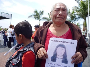 Doña Teresa Huayllani de Ulloa no desfallece en la incansable búsqueda de su hija Blanca Luz Urbiola Huayllani (45), desaparecida hace un año cuatro meses en la ciudad de Trujillo. La humilde mujer cría a su nieto de 7 años de edad quien quedó en el desamparo desde el extravío de su madre.