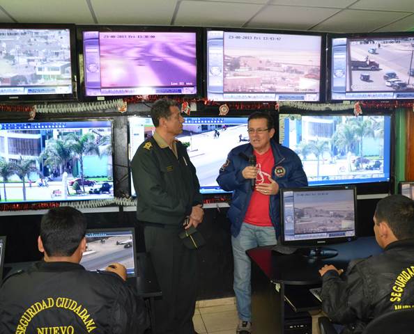 El oficial de la PNP visitó las instalaciones de la oficina de seguridad ciudadana de este distrito y conoció el funcionamiento de las cámaras de seguridad instaladas en los puntos críticos y las avenidas.