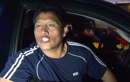 En las imágenes se aprecia que el conductor que vestía un polo color blanco y un pantalón color azul es intervenido por un