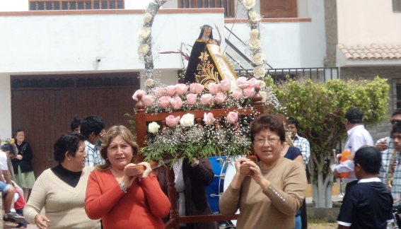 La imagen de Santa Rosa de Lima, patrona de la urbanización, recorrió desde las 11 a.m. las principales calles de esta localidad, acompañada de un numeroso grupo de vecinos y fieles devotos de la “santarrosita” como es llamada con cariño la santa patrona de América Latina y las Filipinas.
