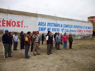Por intermedio de su secretario general Wenceslao Risco Zúñiga demandaron al alcalde provincial Luis Arroyo Rojas la construcción inmediato del campo deportivo que cuenta con código SNIP 81610 y que no puede ejecutarse Porque