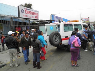 La comerciante Kelly Flores Pérez de 34 años, que fue baleada la tarde del domingo cuando sicarios acabaron con la vida del exdirigente del Mercado 2 de Mayo, Omar Castro Zurita, fue evacuada de emergencia al Hospital Regional de Trujillo.