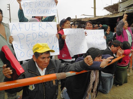 “Pedro Reyes es el culpable de que a nuestra compañera Alejandrina Moreno la hayan disparado, es que no le importa que siga corriendo sangre en el mercado, pero ya basta, no vamos a permitir que esté un día más en la administración”, protestó la presidenta de la comisión transitoria de este centro de abastos, Flor Guevara Velásquez.(Texto y fotos Lindberg Cruzado)