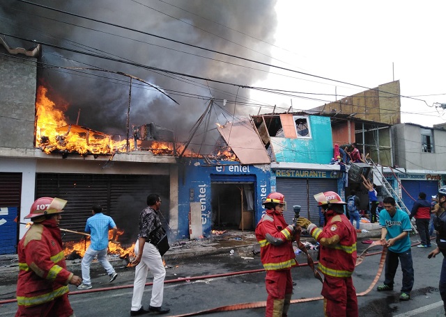 Los comerciantes y vecinos de la primera cuadra de la avenida Buenos Aires en el pueblo joven El Progreso vivieron momentos de mucha desesperación y terror porque las llamas avanzaron incontrolablemente a varios inmuebles alquilados para venta de productos de segunda.