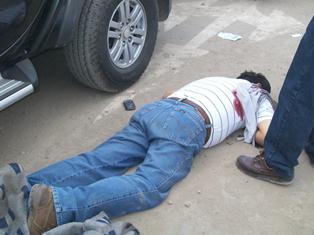 Foto 1: Cuerpo sin vida del alcalde de Casma, José Montalvan Macedo, yace sobre el pavimento, en la entrada de su vivienda.